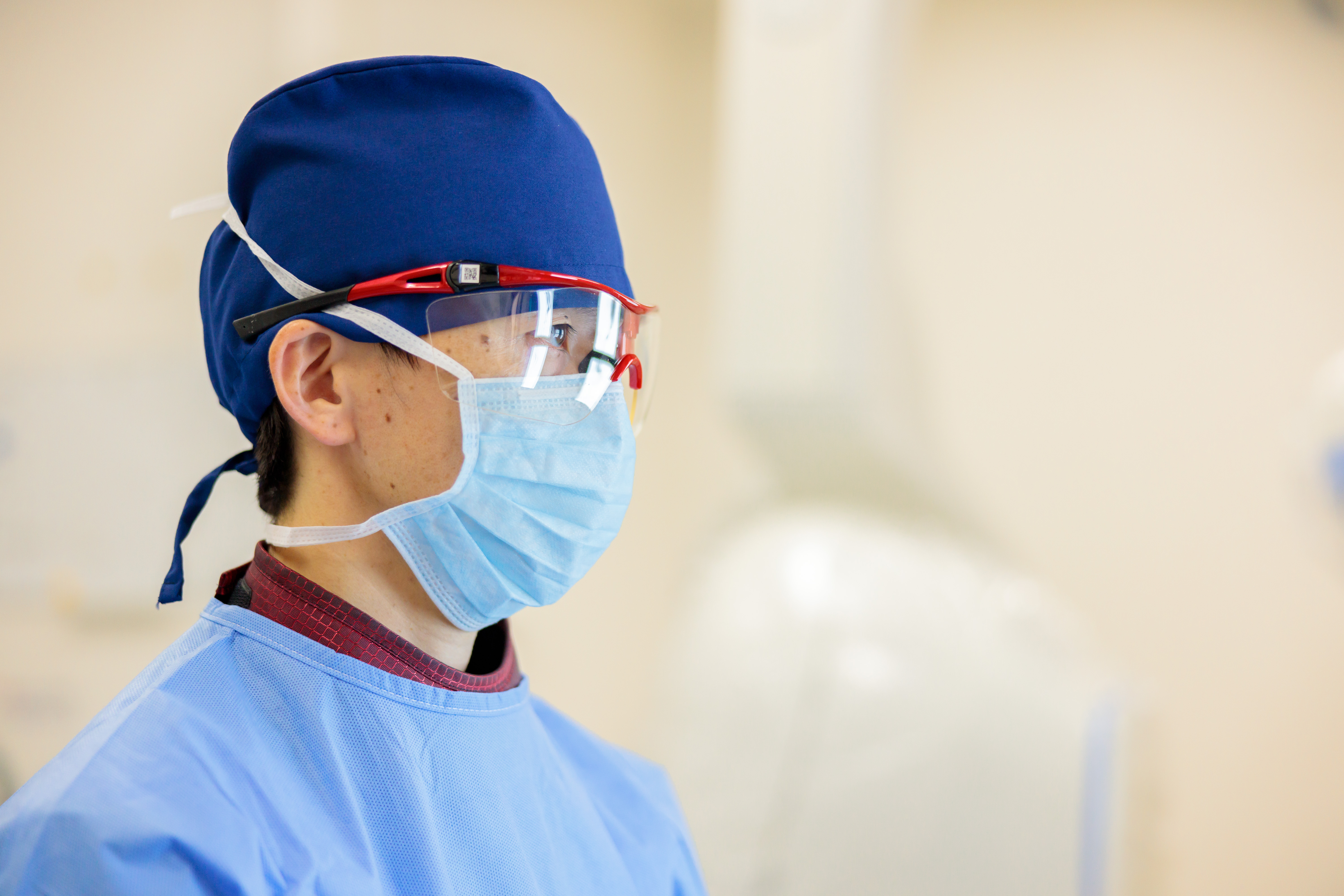 当院に赴任して5年目の脳神経外科医です。最も魅力を感じているのは、開頭手術も血管内治療も両方経験できる点です。血管内治療についても最新機種のフィリップス社のAzurionを導入しており、地域に根ざした急性期脳卒中治療に打ち込めるやりがいのある環境です。
